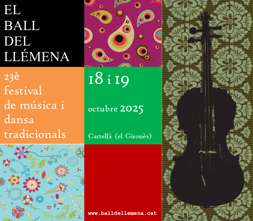 C'est la 23ème année que nous organisons un festival de musiques et danses traditionnelles à Sant Gregori et Cartellà, en Catalogne, à l’entrée du Val du Llémena (Vall del Llémena). Tout ça a commencé l’an 2000 avec le Festival de la Carbonera et depuis lors, seulement avec l'interruption des années de pandémie et sous différents formats, nous avons consolidé les rencontres. Nous souhaitons que vous trouviez intéressante notre proposition et que bientôt vous veniez danser avec nous dans cette nouvelle occasion du Bal du Llémena les prochains 18 et 19 octobre 2025.